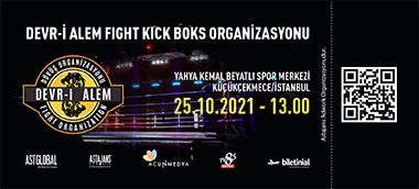 Dünya, Avrupa ve Türkiye derecelerine sahip birbirinden değerli kick boks sporcuları Devr-i Alem Fight Kick Boks Organizasyonu ile ringe çıkıyor. Astajans organizatörlüğünde gerçekleşecek organizasyon, 25 Ekim Pazartesi akşamı saat 21.00 de TV8,5 canlı yayını ve 14:00 de alt maçlar ile İstanbul Küçükçekmece Yahya Kemal Beyatlı Spor Merkezinde gerçekleşecek.